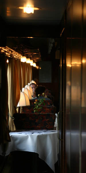 Im Barwagen spielt der Pianist — kaum zu glauben, aber wahr „As Time Goes by“ und natürlich noch jede Menge andere Stücke. Und wenn auf offener Strecke ein moderner Zug im Langeweileoutfit am Fenster vorbeihuscht, taucht der Gast aus dem Historientraum auf. Wer im Orient Express reist, wird schnell zum Gegenstand öffentlichen Interesses. Falsch: Eigentlich ist es doch der Zug, der bei jedem Halt Scharen von Kameraleuten auf die Bahnsteige lockt. Die Kameraverschlüsse zucken im Sekundenbruchteil-Takt. Orient digital. Gefilmt wird auch. Die meisten Fans sind Männer in den 40ern. Und sie haben nur ein Ziel: Die Lok. Wenn sich die Maschine schnaubend in Bewegung setzt, leuchten die Augen gestandener Mannsbilder wie einst zu Weihnachten. Die Damen interessieren sich für die Interieurs. Der Orient Express — das ist eine Art Johannes Heesters auf Schienen. Und wenn Jopi längst mit den Engeln singt, dann wird der Orient Express noch immer fahren.